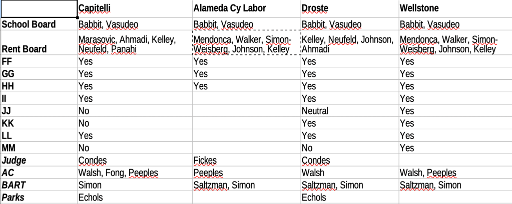 Share this: Click to share on X (Opens in new window) X Click to share on Facebook (Opens in new window) Facebook Click to email a link to a friend (Opens in new window) Email Like Loading... Related Chart of endorsements on county & Berkeley races October 11, 2020 / Andrew J. Lazarus / Leave a comment