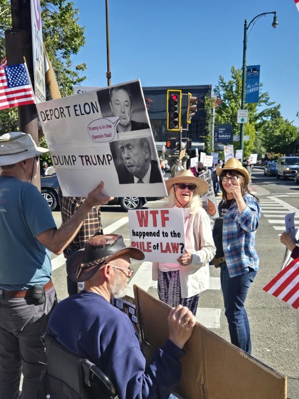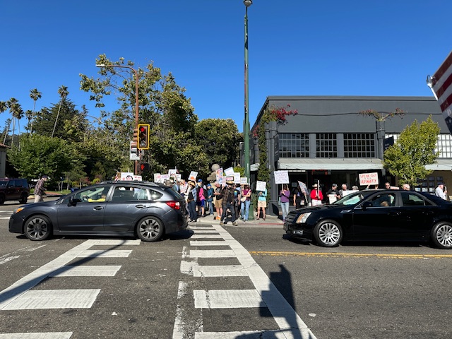 The Friday protests are continuing, with slightly increased turnout. And foot traffic should swell when Cal students return. We are looking for a politically-acceptable source for some yellow vests; we would like to have one person in a vest on each corner. I’m going to slightly enlarge our QR Code flyer, to produce an alternate version we will ask merchants to post visibly.